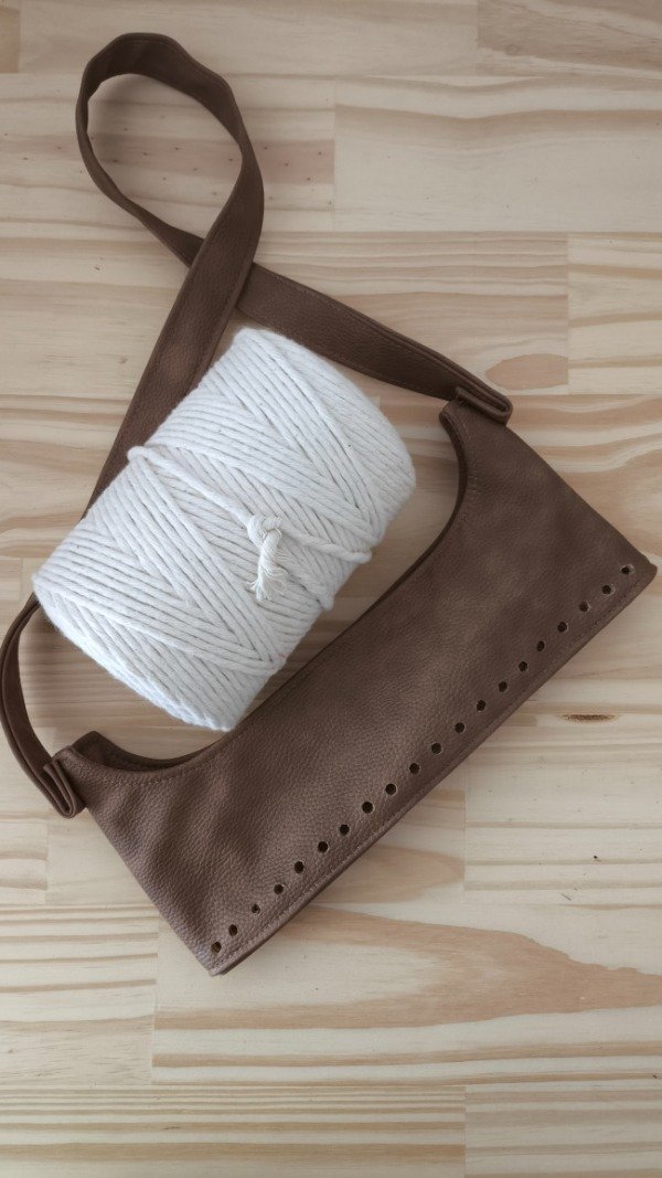 • 1 bobina de hilo de algodon 27 hebras color natural (es hilo grueso de 4,5 mm de grosor) ideal para este proyecto. El mismo material que me vas a ver usando en el paso a paso de los videos donde te enseño a tejer la cartera.