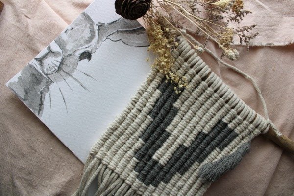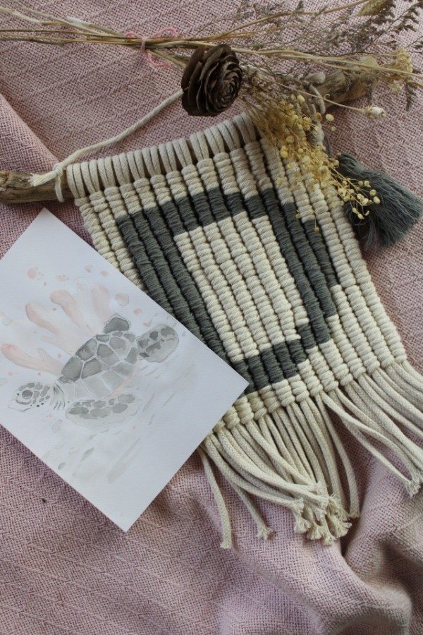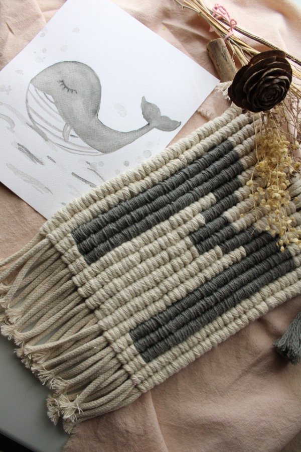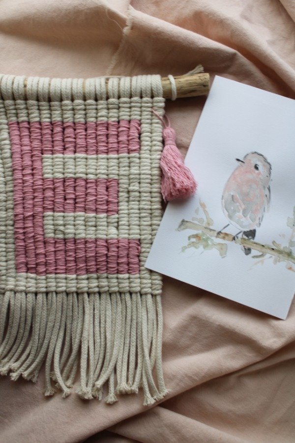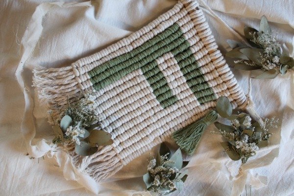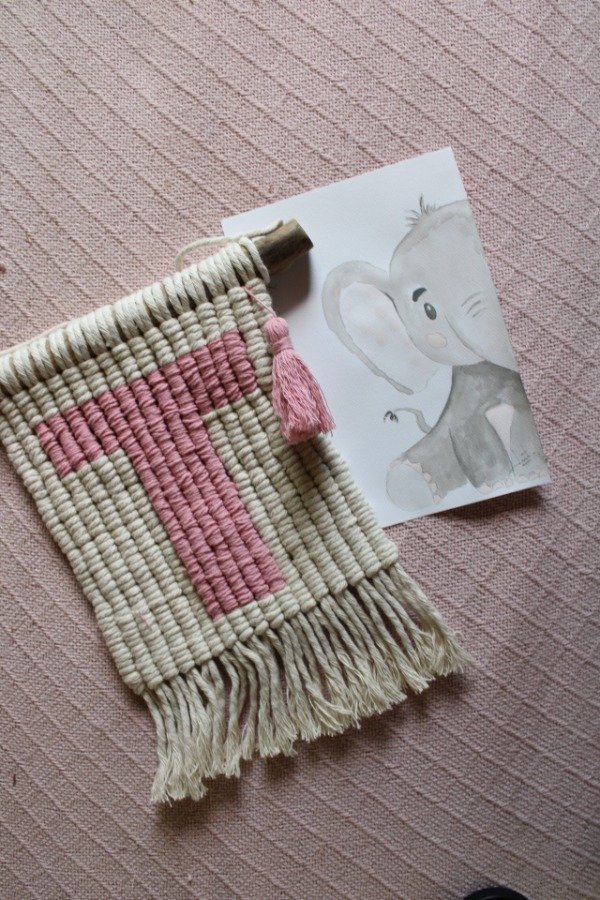 Realizado en hilo de algodon color natural y letra en color a eleccion. Coordinar color por mensaje privado.