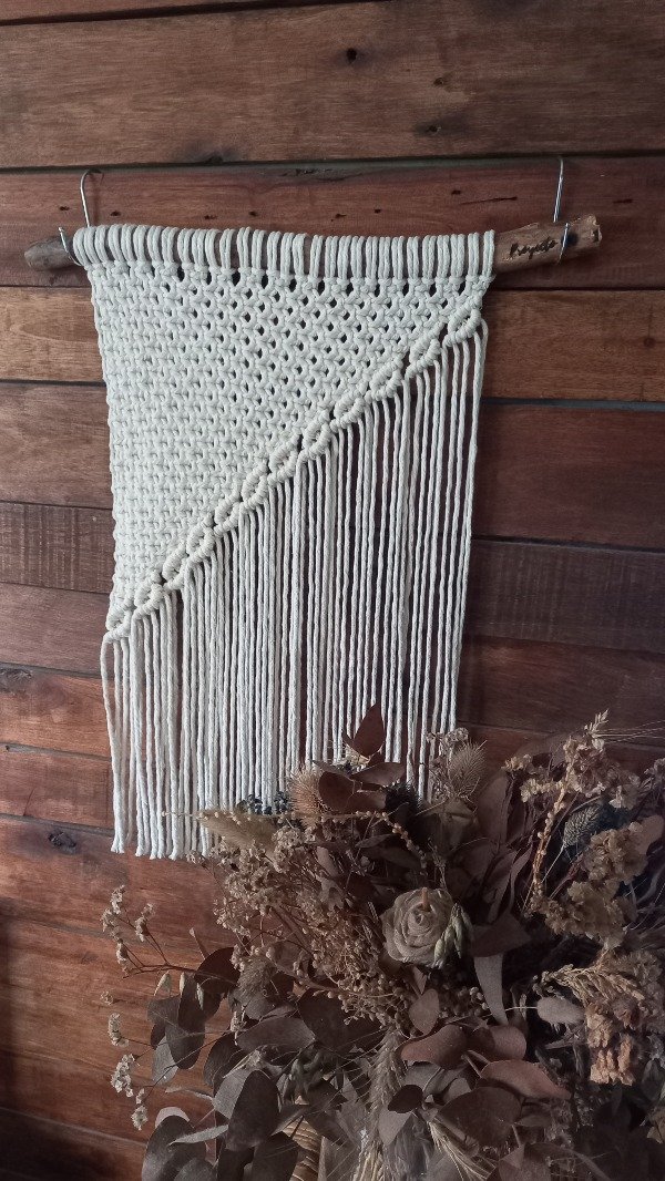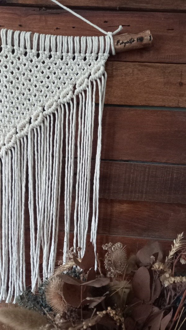 Tapiz tejido totalmente en hilo de algodón natural sobre rama tratada y laqueada.