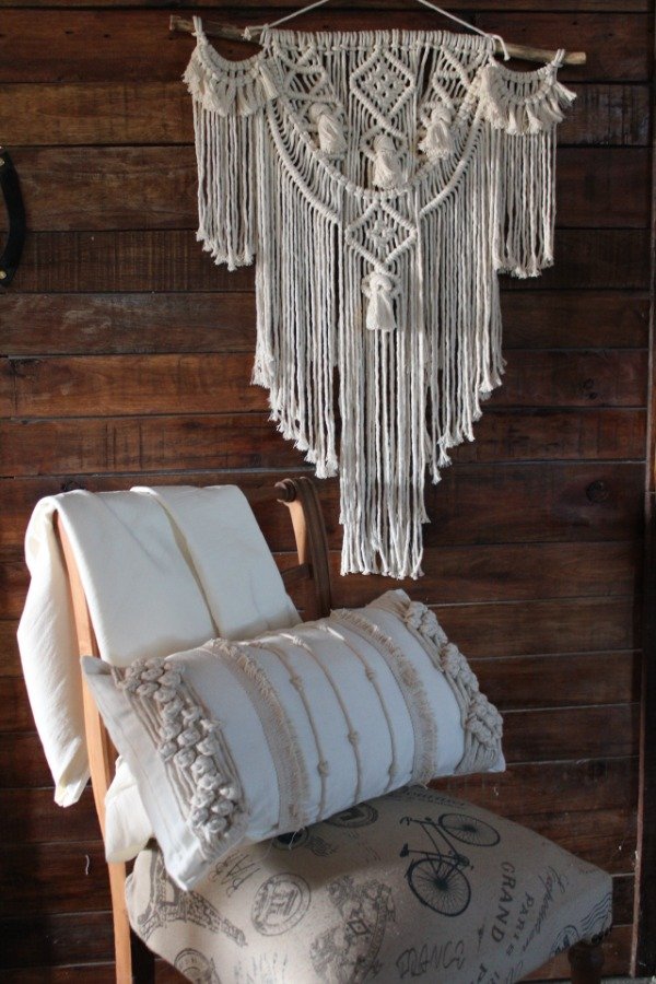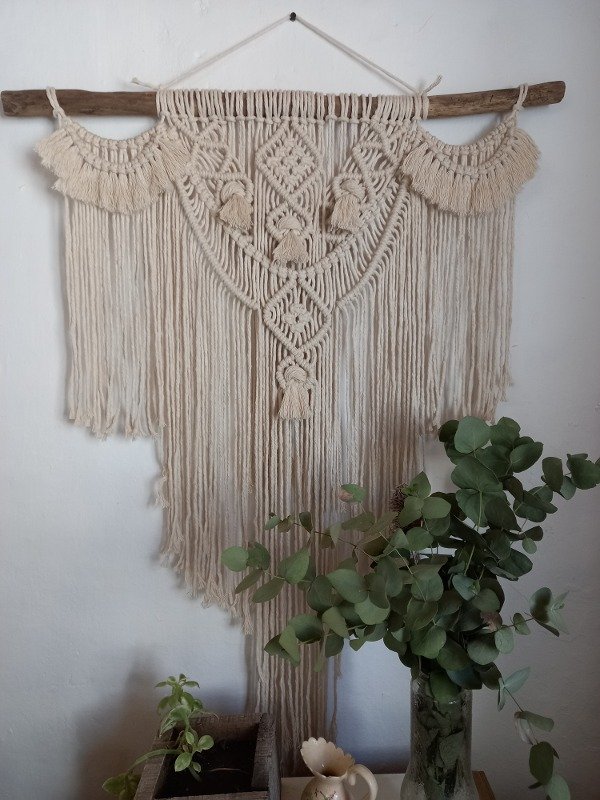 Trabajo realizado con la tecnica de macrame en hilo de algodon color natural.